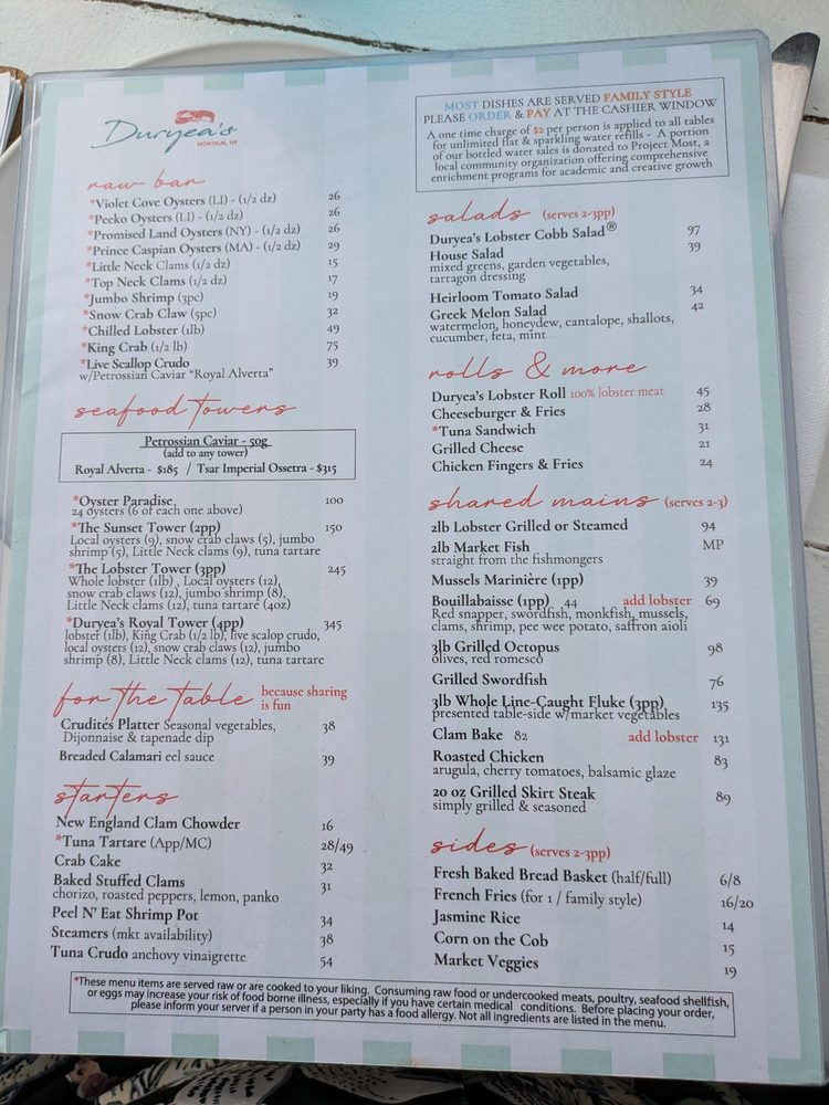 Welcome to Duryea's Montauk, a seafood haven located on the scenic waters of Montauk, New York. Offering a vibrant, casual atmosphere, this gem invites guests to savor the essence of coastal dining. The menu features highlights such as the renowned Lobster Cobb Salad, bursting with fresh flavors, and the famed Lobster Roll, made entirely of succulent lobster meat. For those seeking an adventure, the two-pound lobster prepared grilled or steamed is a must-try!